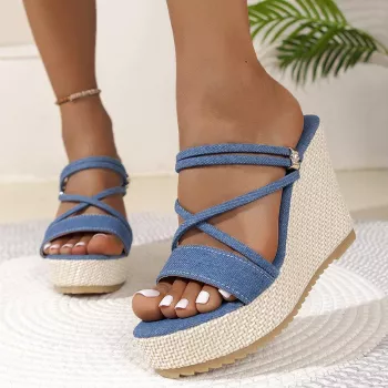Denim Wedge Heel Sandals