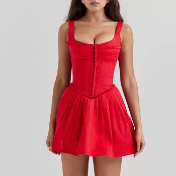 Red Sleeveless Mini Dress with Square Collar and Backless Design